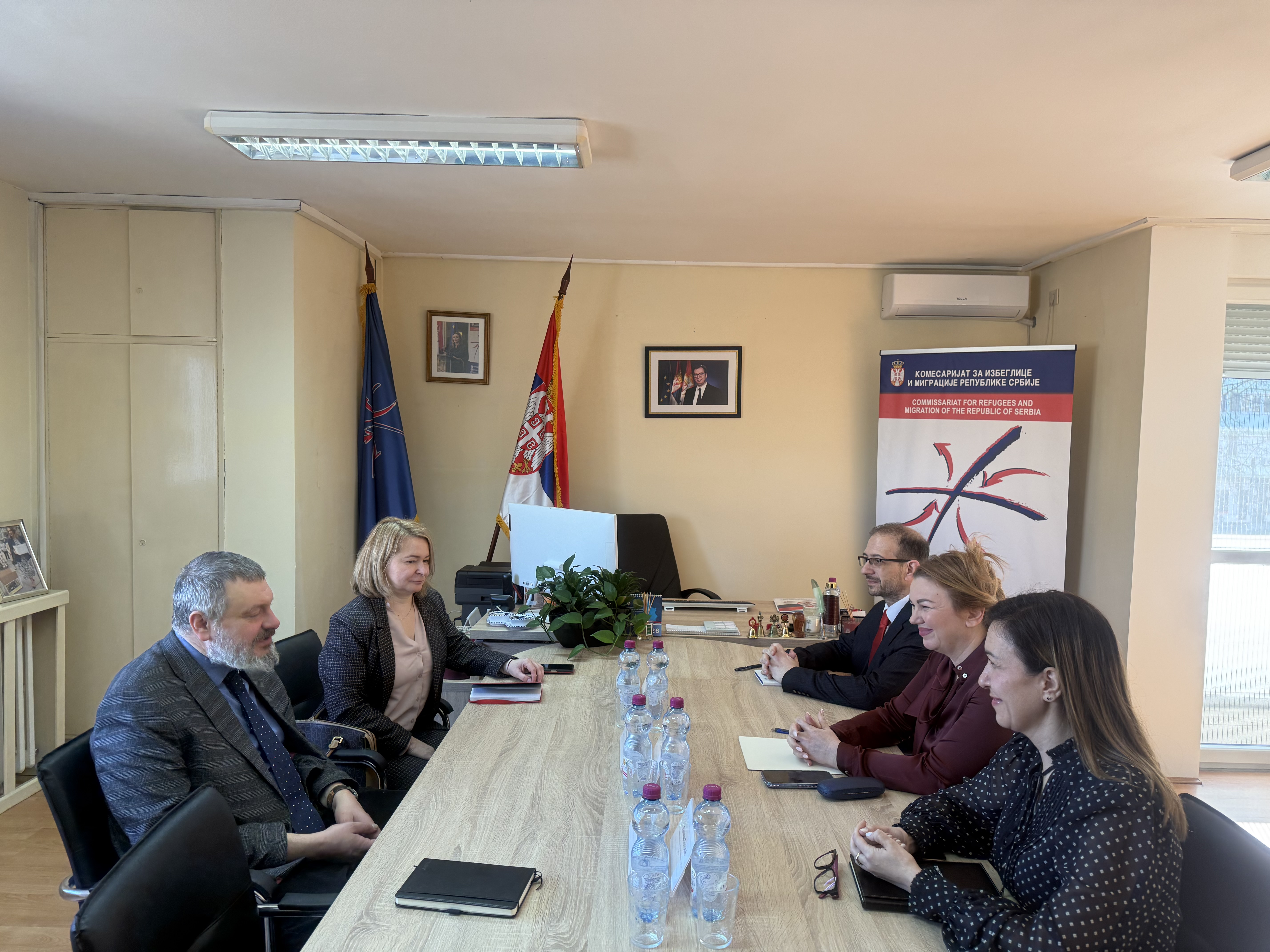 25.02.2026.Комесарка за избеглице и миграције Наташа Станисављевић састала се са Њ.Е. амбасадором Украјине у Републици Србији Олександром Литвиненком.Током састанка разговарано је о положају држављана Украјине који бораве у Републици Србији, са посебним освртом на лица која су смештена у Центру за азил у Врању, којим руководи Комесаријат, као и о даљем унапређењу сарадње.